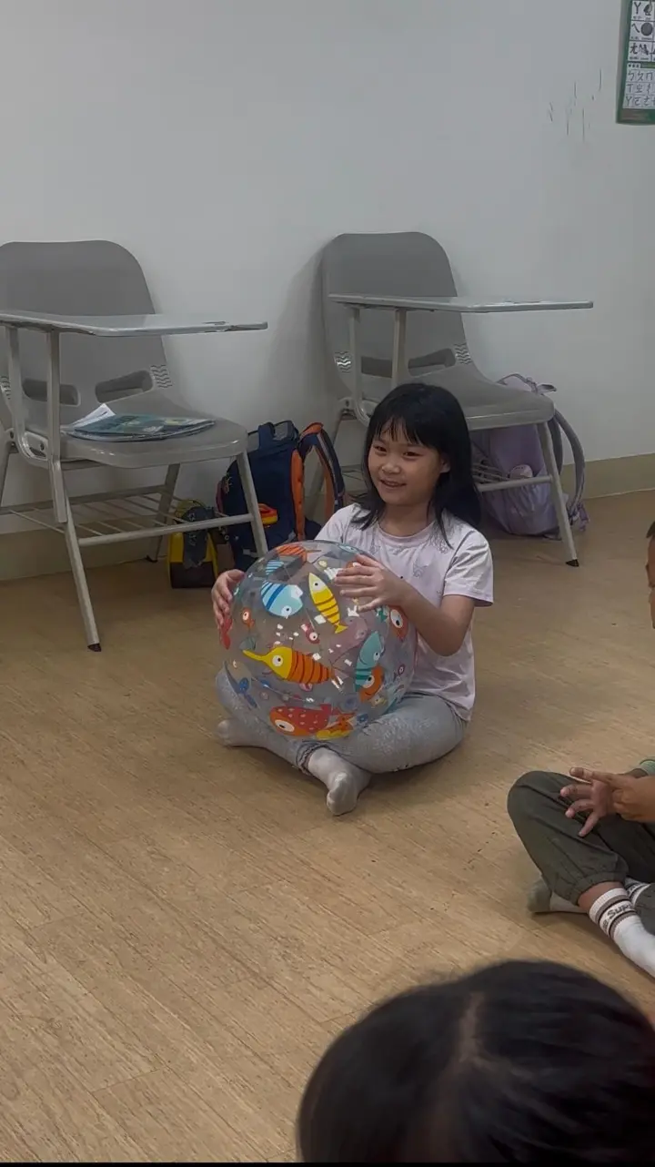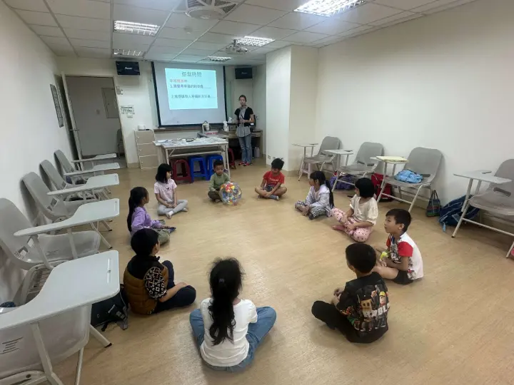 暖身遊戲時,小真分享了自己最快樂的時刻,是跟著媽媽搭飛機回廣東,因為可以見到想念的外婆;而平時較安靜的小華,這次也特別專注,不僅積極舉手回答問題,還能清楚說出阿灰在故事中遇到的人物,以及他們對「快樂」的不同理解,讓人看見他的成長與自信。故事結束後,玉娟老師帶著孩子們一起複誦本月經文:「心中歡暢、常享豐筵」,並溫柔地分享:「只要心裡有快樂,每一天都會像過節、像在吃大餐一樣開心。」在這樣被理解、被鼓勵的陪伴中,孩子們一點一滴學會感受幸福,也慢慢把快樂帶進自己的生活裡。