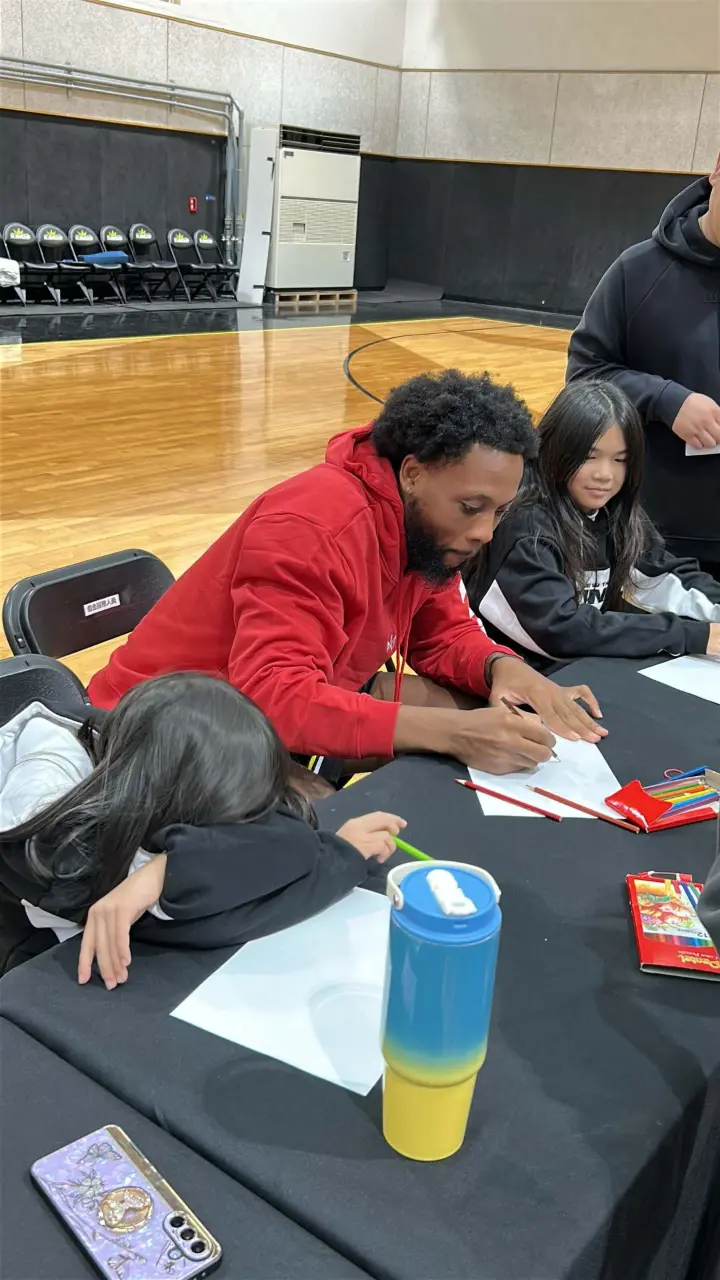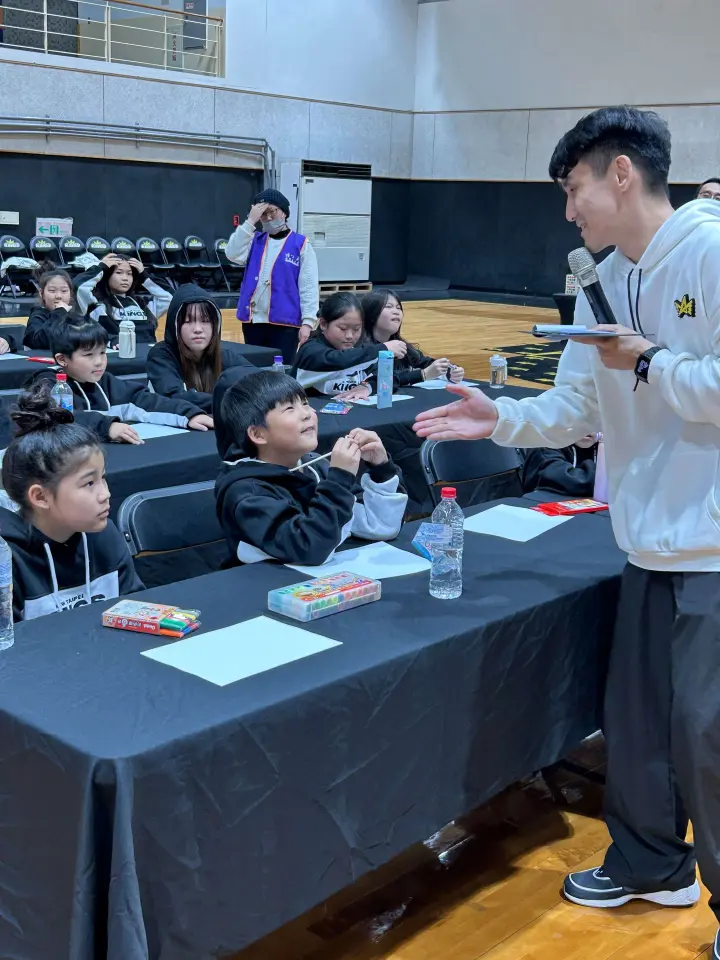 這一天,孩子們受邀來到新莊體育館,與 新北國王隊 的明星球員們近距離互動。陣中的球星 簡祐哲、呂政儒以及飛米(Femi Olujobi) 暫時卸下賽場上的嚴肅,化身為親切的「陪讀大哥哥」,與孩子們玩成一片。